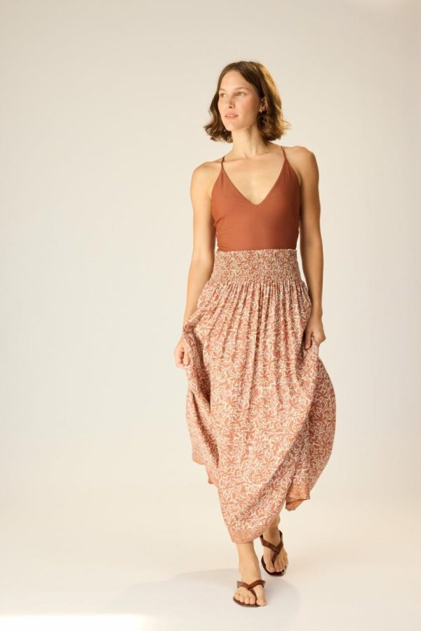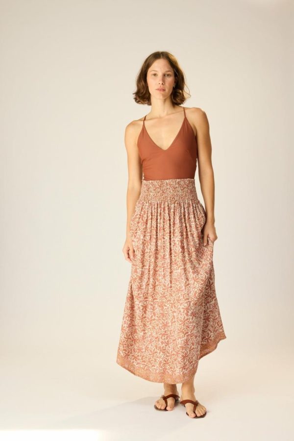 Women BELLA SKIRT Gloriosa Print Sandstone | Natalie Martin Bottoms