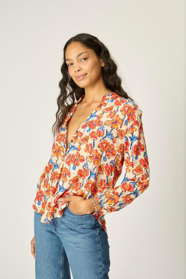 Tunic style blouse cut in a slim silhouette with button detailing at the cuffs.