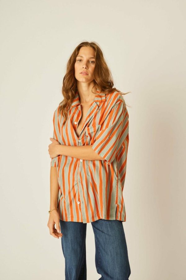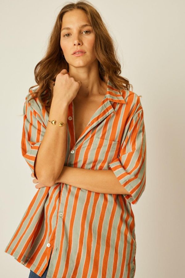 Women/Men KEVIN SHIRT UNISEX Batik Stripe Sage | Natalie Martin Tops