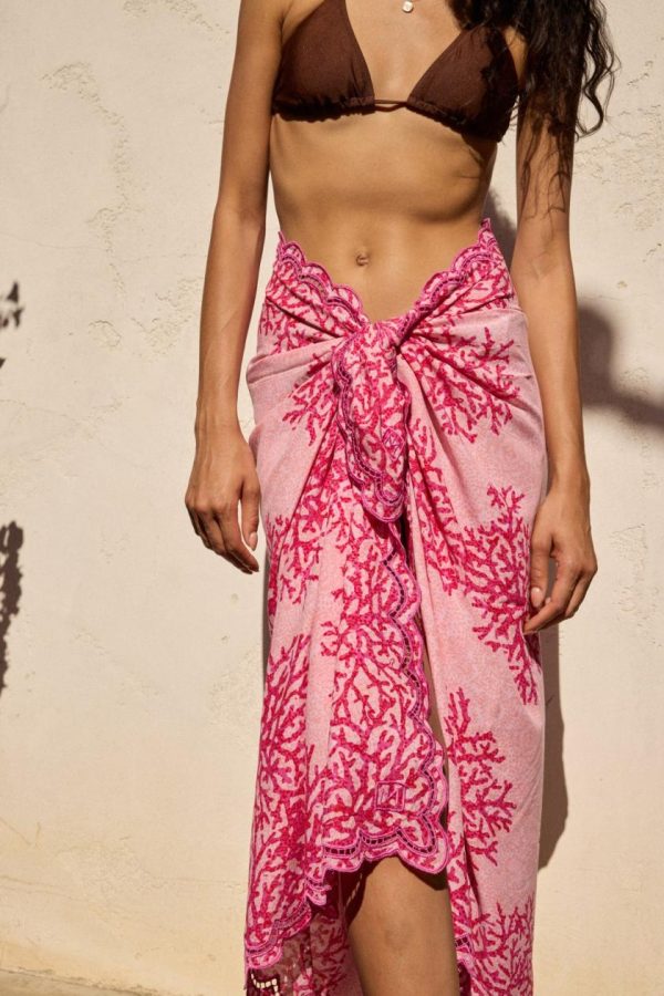 Our NM Heritage Embroidered Sarong brings artistry to the everyday, blending function with heirloom beauty. Reverse-dyed and hand-stamped with intricate coral motifs—each print subtly unique. Finished with delicate embroidery along the hem, it’s an effortless piece meant to be worn, wrapped, and treasured season after season.