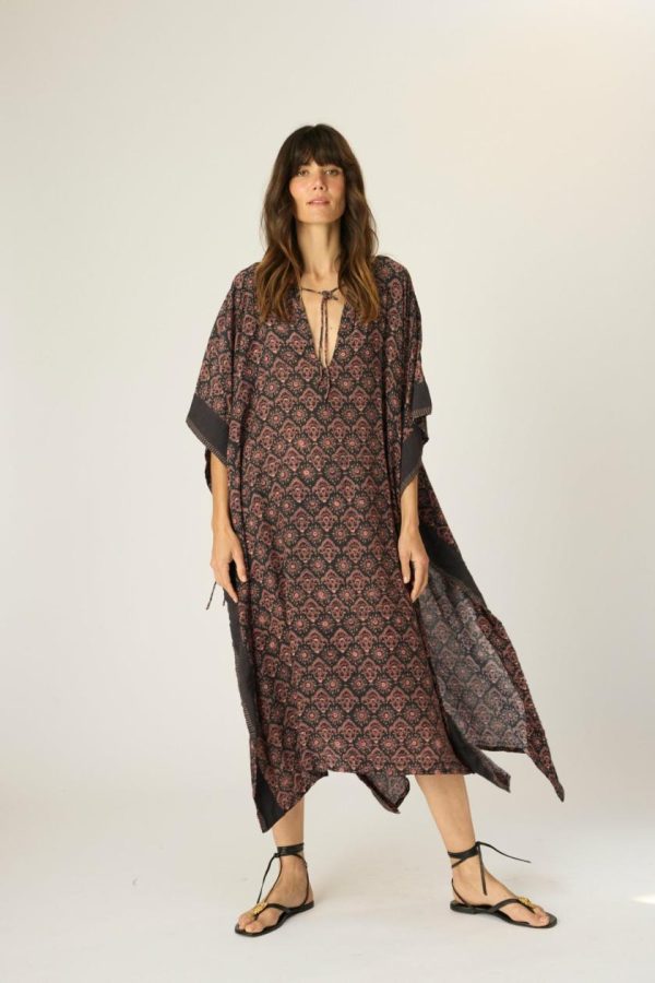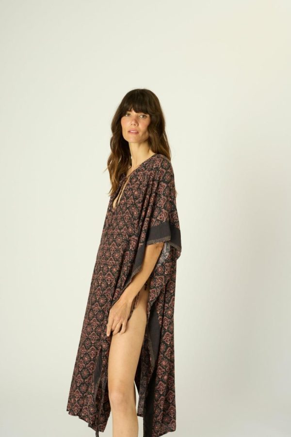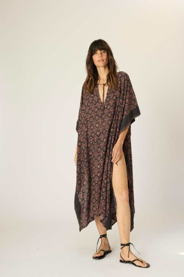 Women PAULINA CAFTAN Fleur-de-lis Black | Natalie Martin Cover-Ups