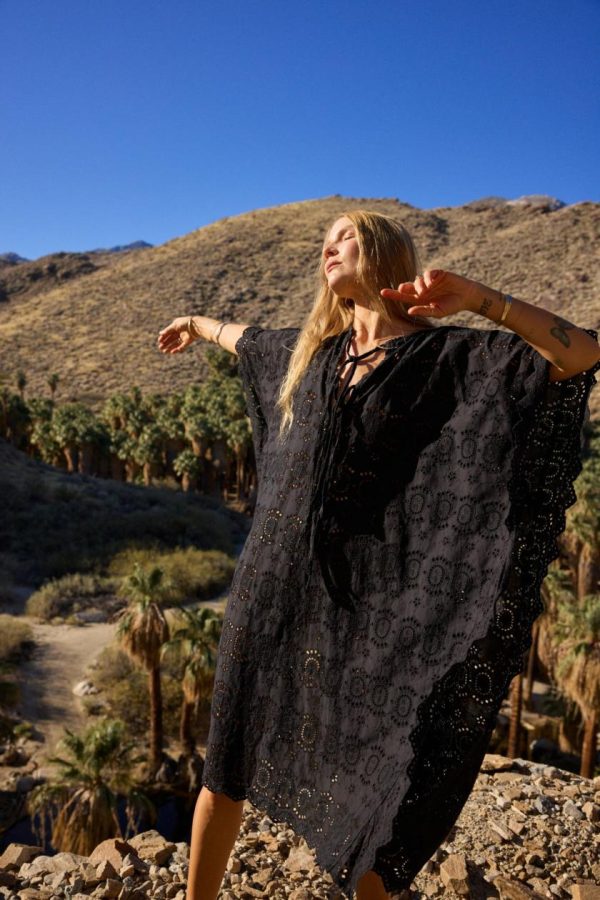 Our OS midi length Caftan takes you directly from the beach to your brunch. A tie-detail v neck paired with a fluid oversized silhouette donning feminine side slits and elegant seaming making it an easy to style wardrobe staple