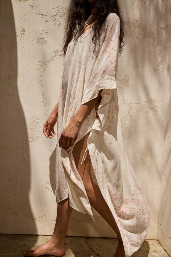 Our OS midi length Caftan takes you directly from the beach to your brunch. A tie-detail v neck paired with a fluid oversized silhouette donning feminine side slits and elegant seaming making it an easy to style wardrobe staple.